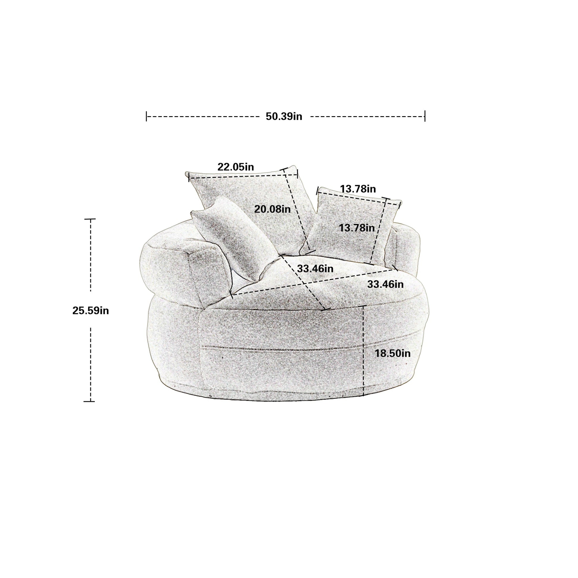 The compact, circular silhouette makes it a smart choice for apartments, studios, and reading corners, while three matching chenille pillows provide extra comfort and a cohesive, stylish look. With high-resilience sponge padding, it’s built to resist sagging and maintain its plush feel over time. Best of all, it arrives fully assembled—simply unbox, place, and enjoy.