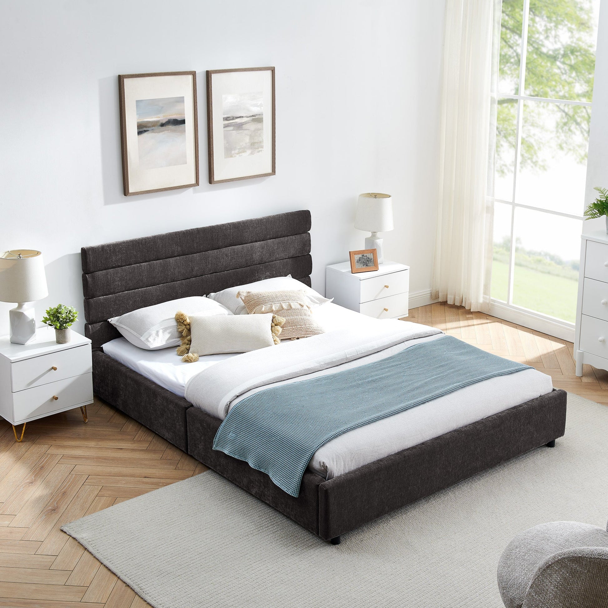 Style: Modern upholstered platform bed